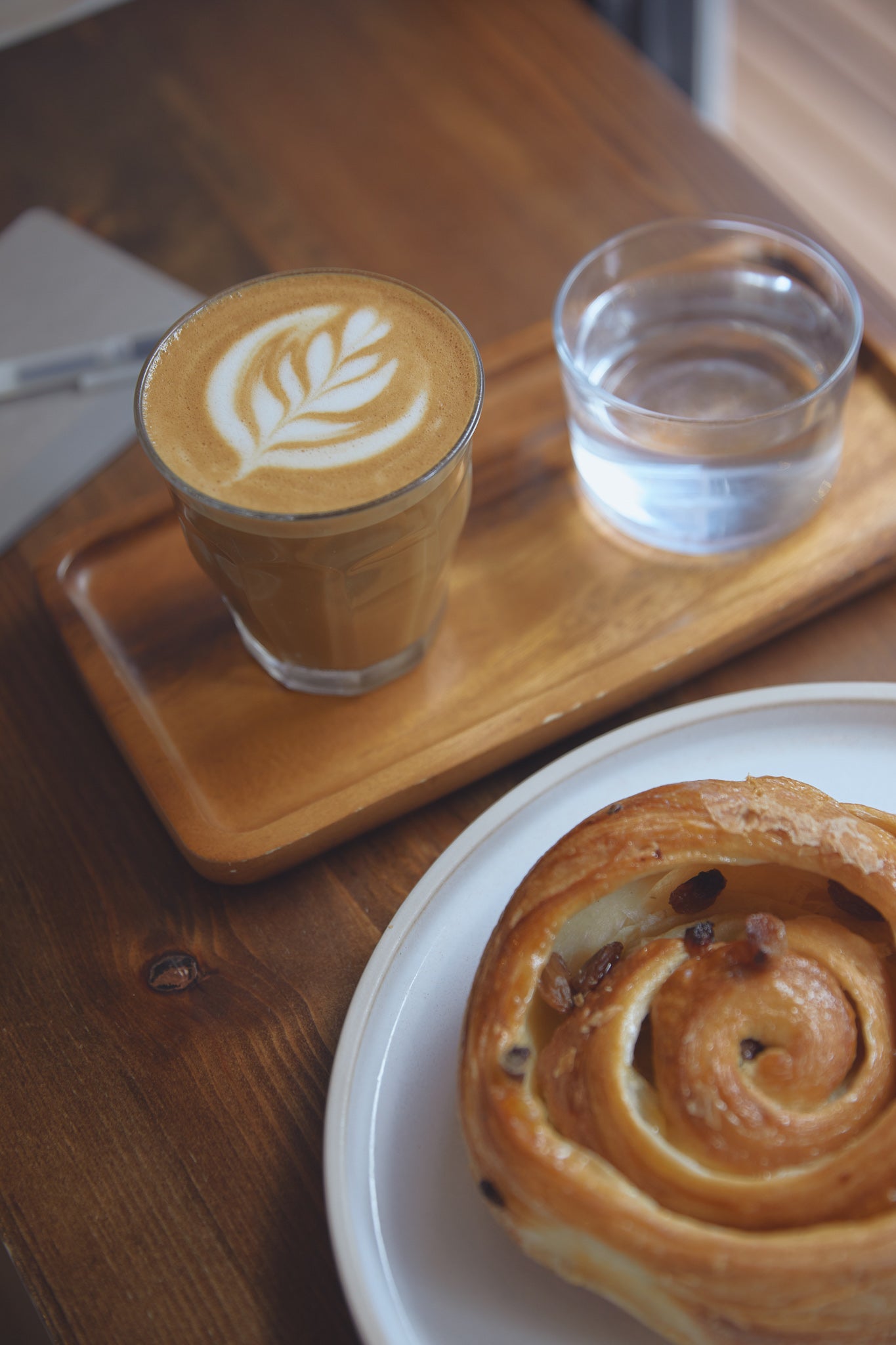 High-protein pancakes, matcha, oat cream, blueberry compote, lemon zest
